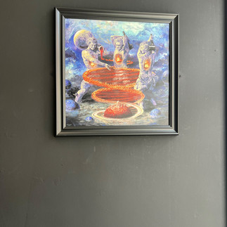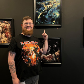 As you can see from the accompanying pictures, this exhibition was everything you could hope for. Stunning artwork displayed and lit in a way that suits it to a tee, with background music to fit the vibe (Metallica was blaring out during my visit) was a match made in heaven. Album artwork that I was already familiar with such as Venom Prison’s ‘Erebos’, Thy Art is Murder’s ‘Human Target’ and Malevolence’s ‘Malicious Intent’ all looked even better blown up bigger and hung on a wall whilst the personal highlight was Testament’s 2020 ‘Titans of Creation’ the colours of which seemed to take on another dimension in this setting.
